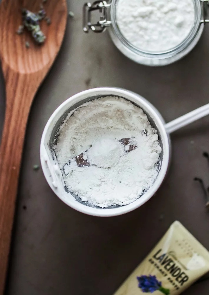 - Make the lemon sugar by blending lemon zest and sugar in a coffee grinder. Add more lavender at this time if you want but remember that a little lavender goes a long way.
