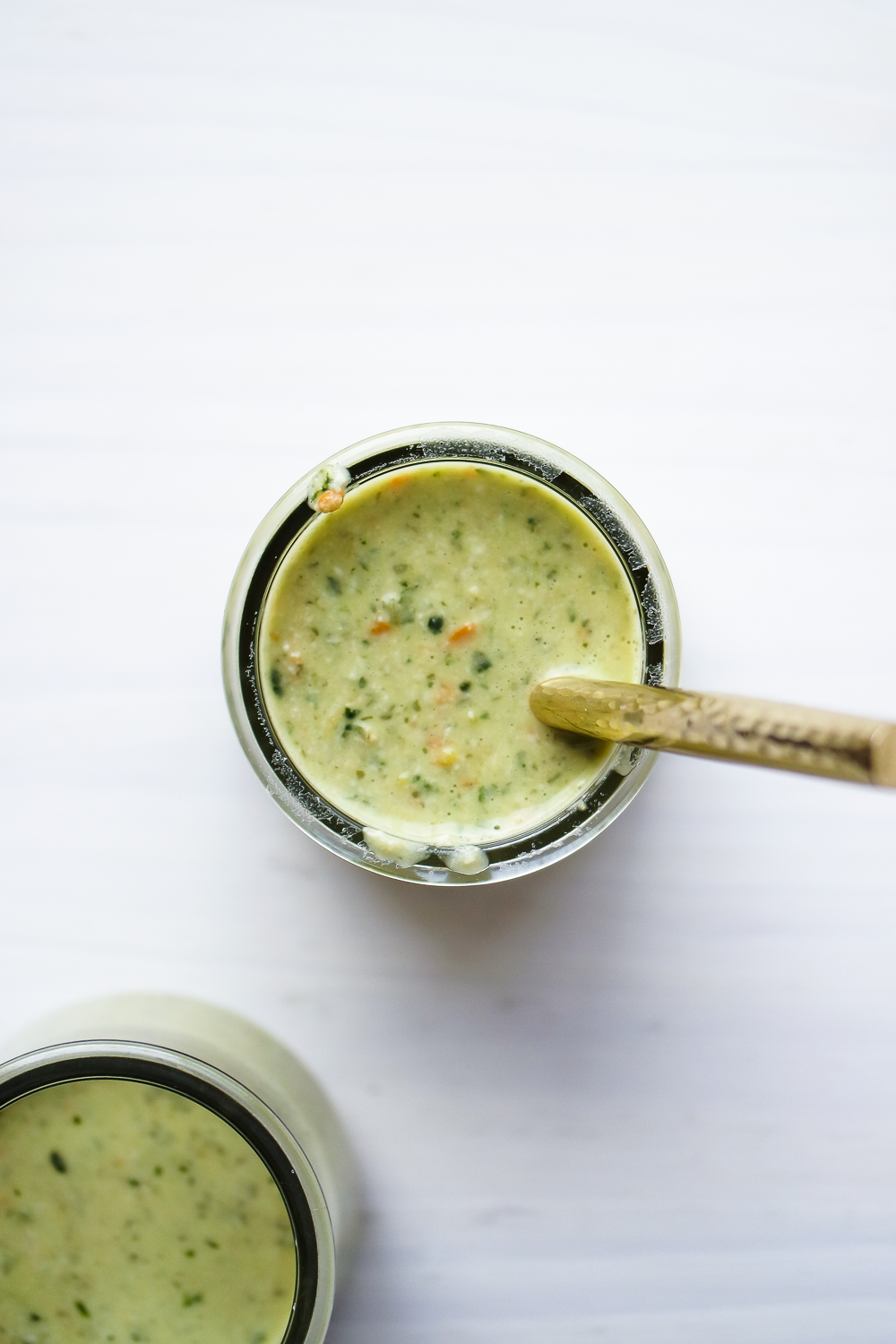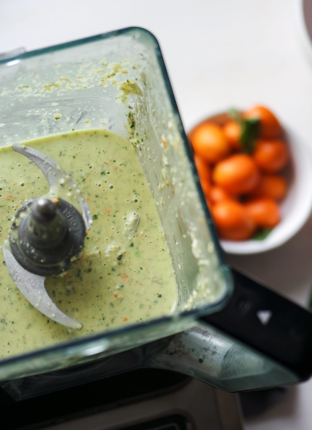 - In a food processor plus all of the dressing ingredients except for the oil and water.