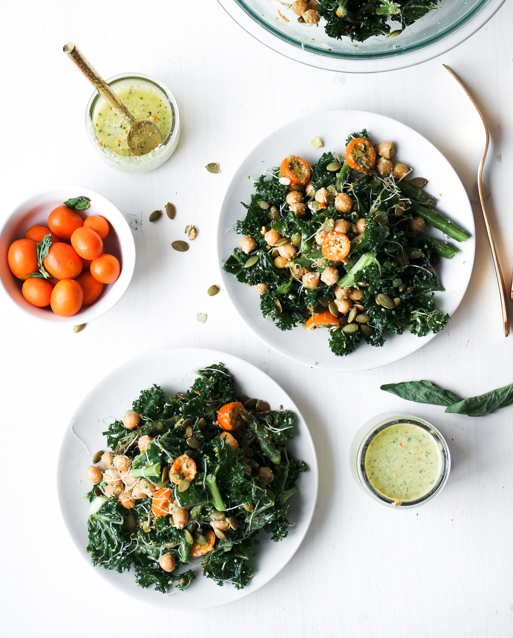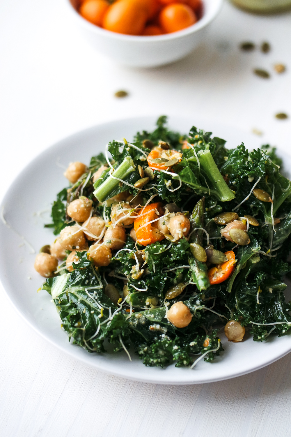 Detox Kale Salad with Kumquat Pumpkin Seed Pesto Dressing