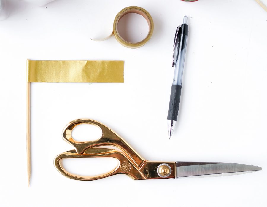 Cut a piece of washi tape approximately 8 in, place the bamboo stick in the center and fold the ends together. Using a Sharpie, write the cutest puns you can think of!