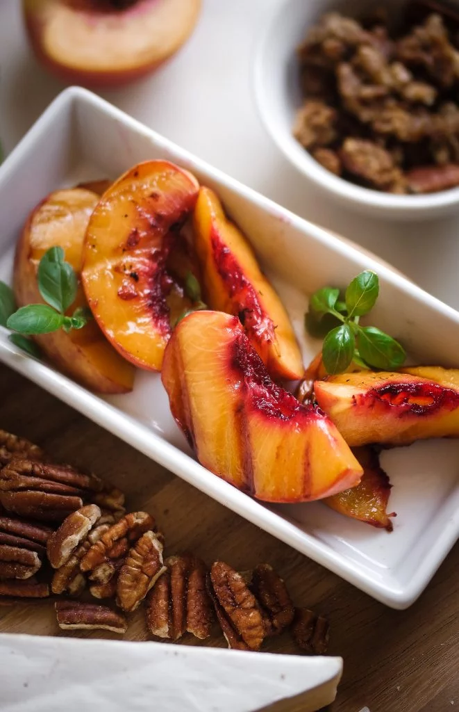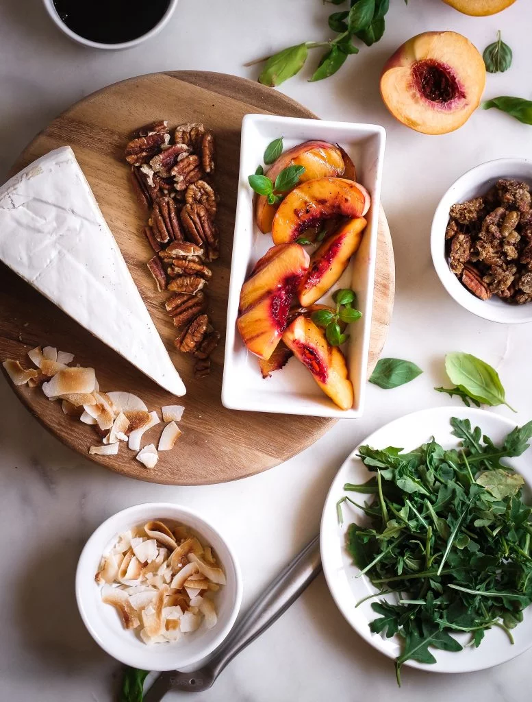 Grilled Peach Brie & Basil Salad with Simple Balsamic Dressing