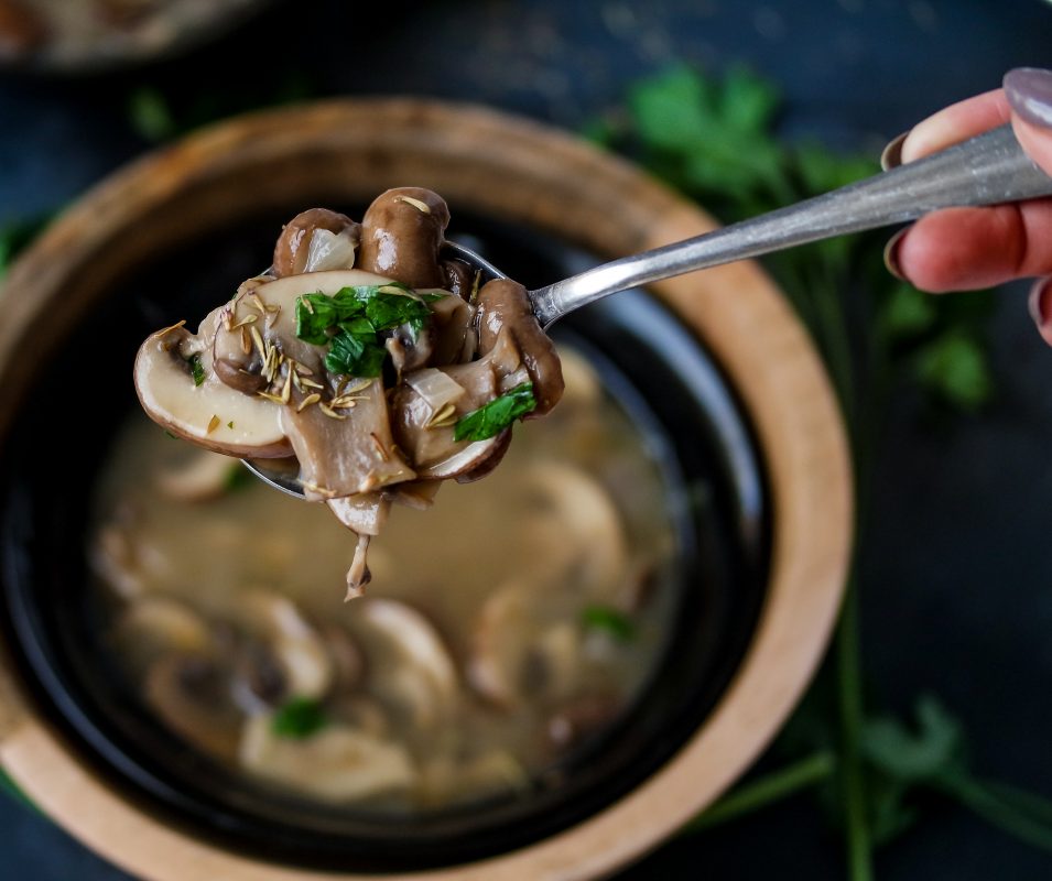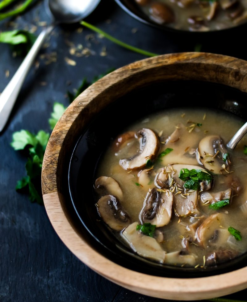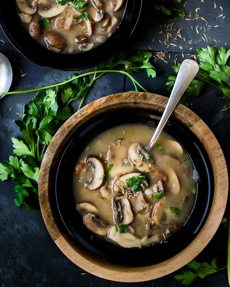Same topic, different thought: Did you know that there are other ways to eat mushroom soup aside from the creamy condensed version you get via cans? Heh, cans. You can have brothy soup or you can have a half creamy, non heavy AF version too! It’s literally a whole new world of soups for me, which is why I couldn’t be more amped about sharing this recipe because it’s already my favorite homemade mushroom soup in the history of ever.