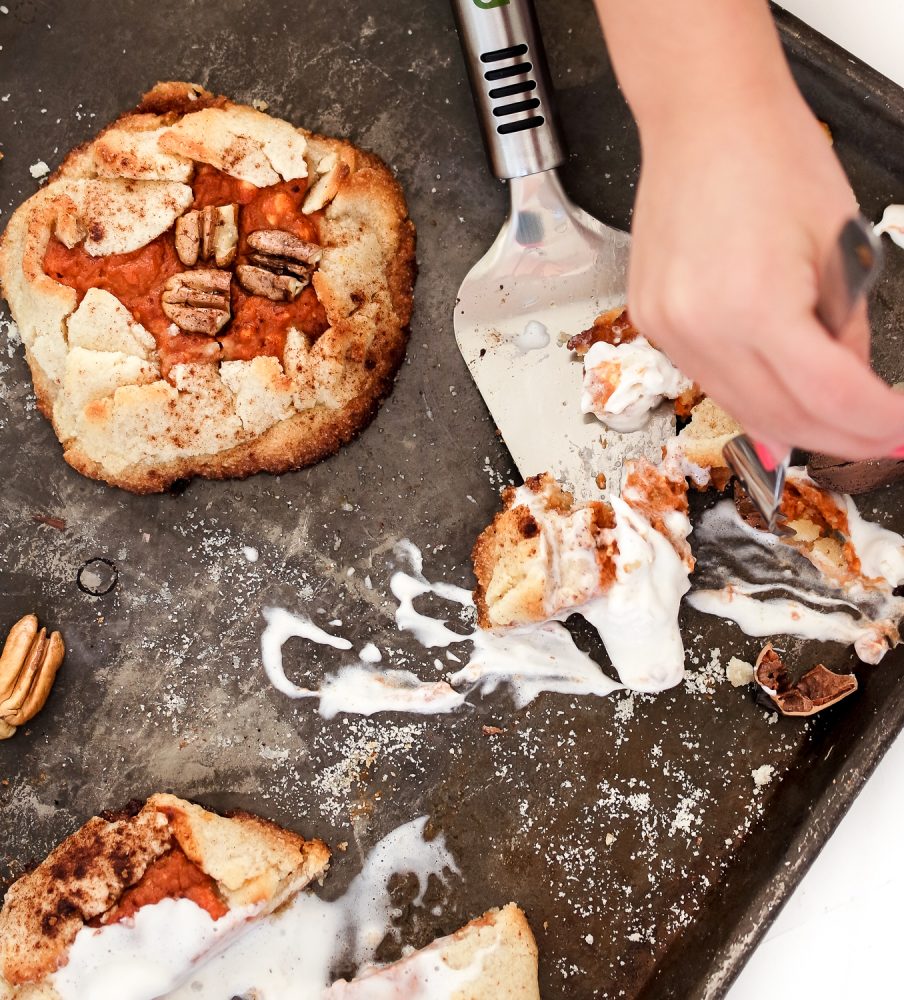 Our first recipe was going to be a vegan pumpkin pie but we decided a galette was more rustic, therefore we could be messy and it would still look great. Don’t get me wrong, she could bake the heck of out of pie, but the foodie in both of us felt like the Pumpkin Galette will be the hot new Thanksgiving dessert and since we are both on-trend it just made sense.