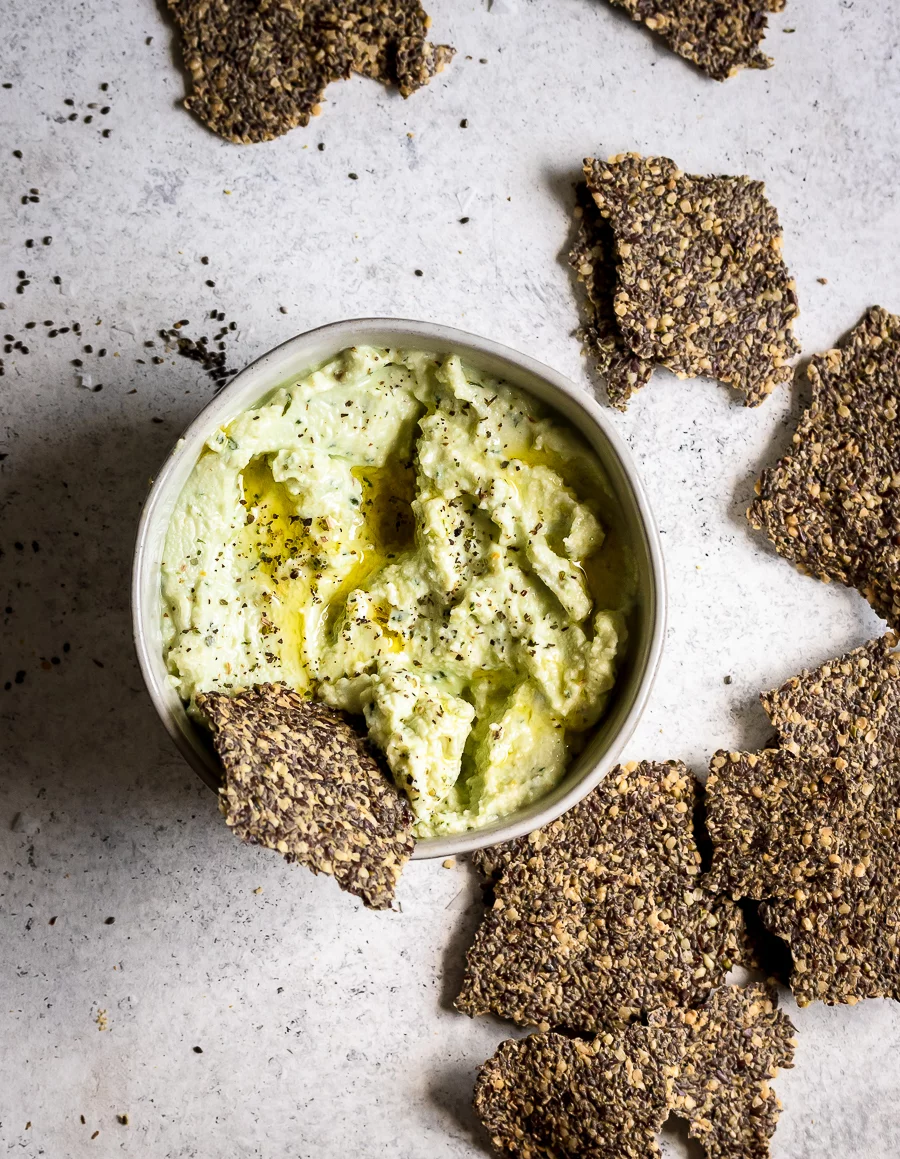 Unbelievably Crunchy Super Seed Crackers & Whipped Herb Ricotta Dip
